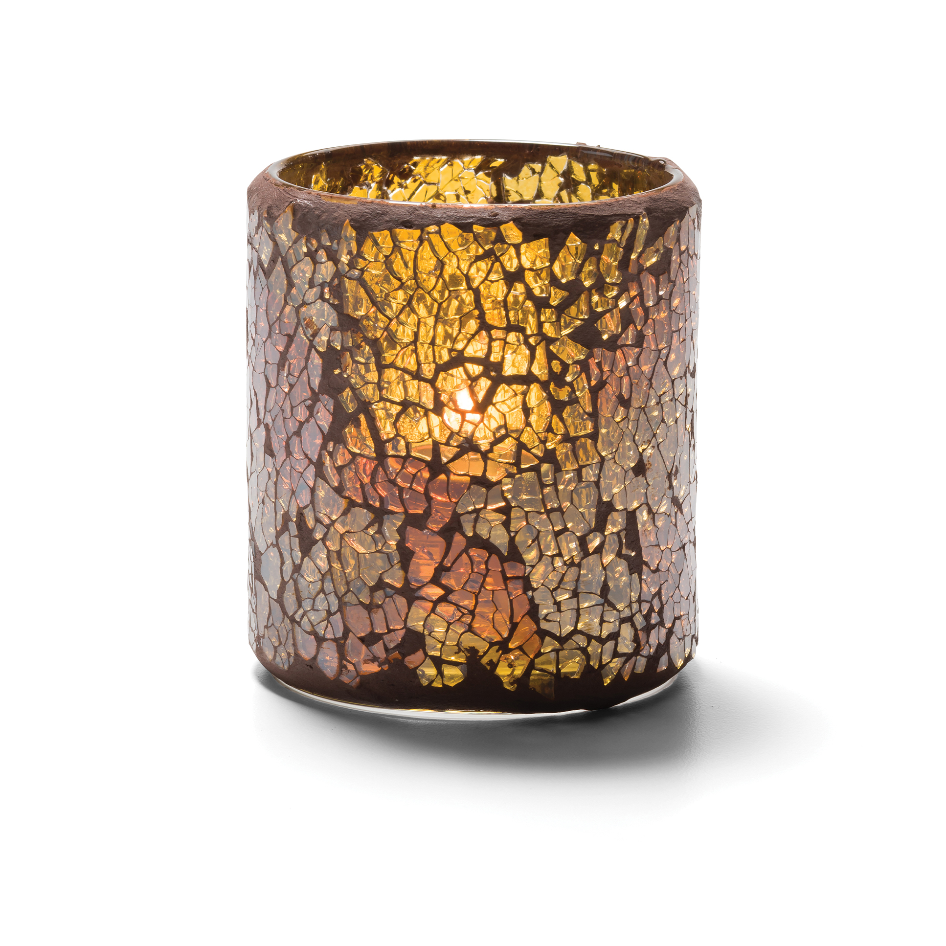Colored, cracked glass features an exotic mosaic look for a fascinating show of light. Votives are also available with a frosted interior that exudes a calm soft light. in: 3.25...