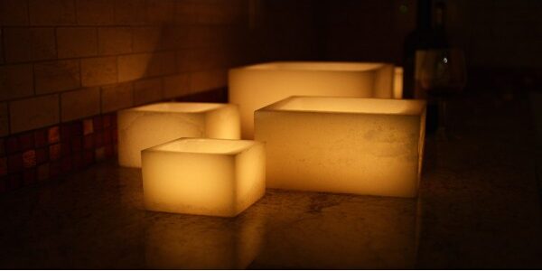Rechargeable Candle System, Commercial Grade Nexis LED up to 36K Hours Battery Lifespan (4″ wide Square Wax Luminaries Included)