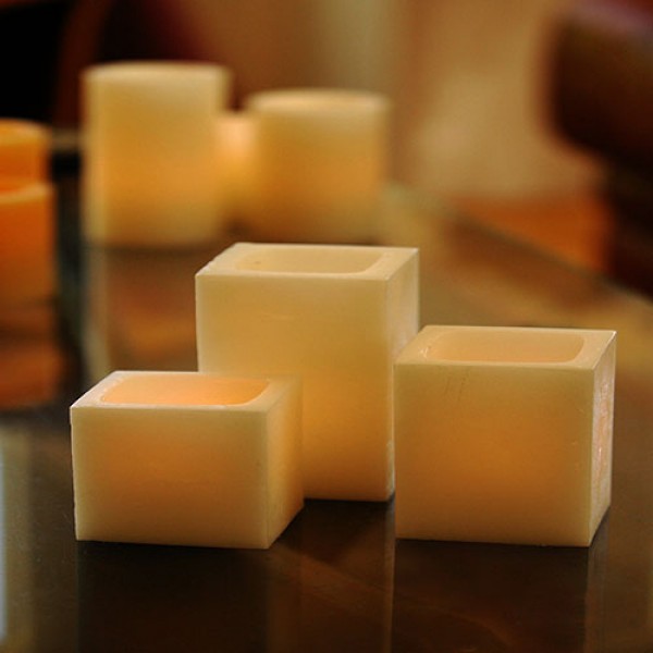 Rechargeable Candle System, Commercial Grade Nexis LED up to 36K Hours Battery Lifespan (4″ wide design Square Wax Luminaries Included)
