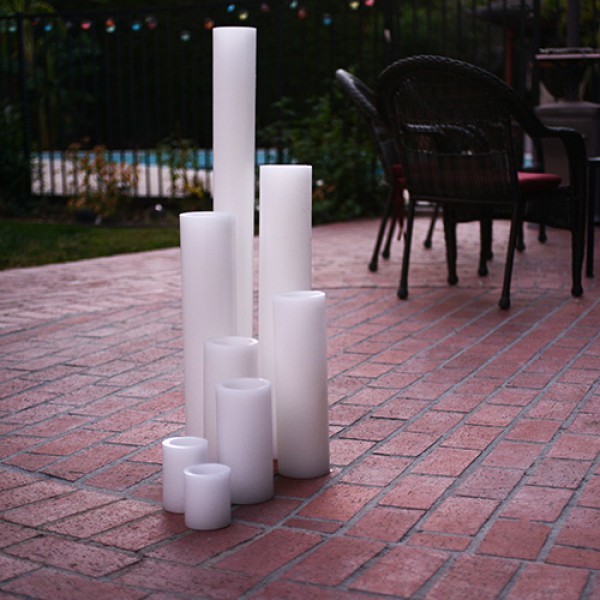 Q Candles Wax Luminaries or Hollow Candles come in a large variety of sizes, ranging from 2.5″ diameter up to 15″ diameter, 3″ tall up to an amazing 44″ tall. These round wax luminaries measure 8″ diameter by 28″, 36″ or 42″ tall. Included you will receive one replaceable 12 hour liquid Tea Light per Wax Luminary.