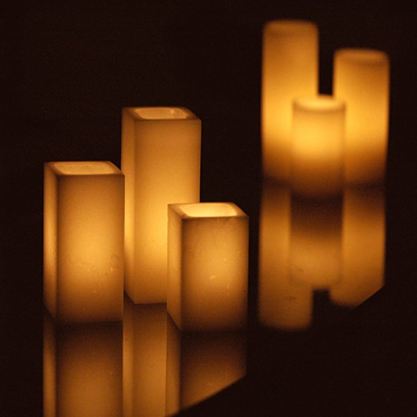 Q Candles Wax Luminaries or Hollow Candles come in a large variety of sizes, ranging from 2″ wide up to 15″ wide and 3″ tall up to an amazing 44″ tall. These square wax luminaries measure 4″ wide by 28″ or 36″ tall. Included is one replaceable 8 hour liquid Tea Light.
