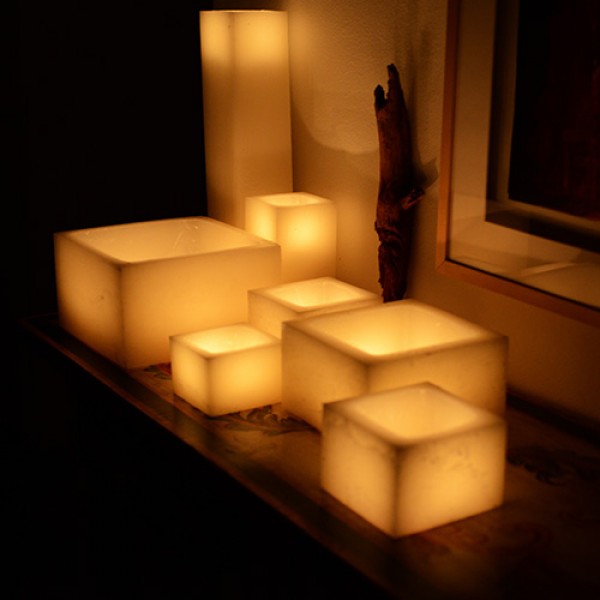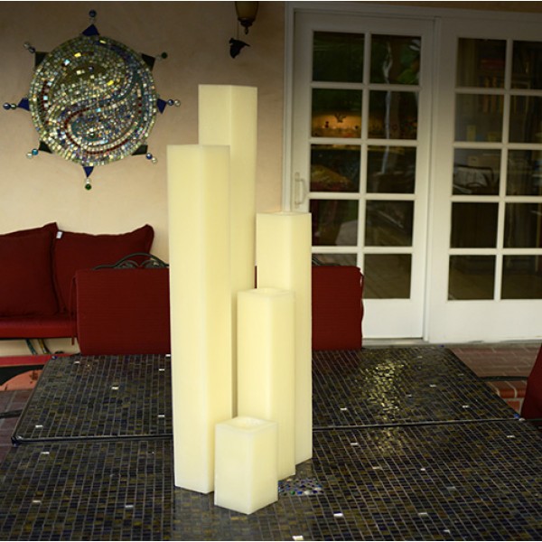 Q Candles Wax Luminaries or Hollow Candles come in a large variety of sizes, ranging from 2″ wide up to 15″ wide and 3″ tall up to an amazing 44″ tall. These square wax luminaries measure 4″ wide by 8.5″, 10″ and/or 12″ tall. Included is one replaceable 8 hour liquid Tea Light.